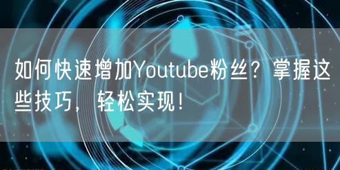 在Youtube上拥有众多粉丝是许多内容创作者追求的目标。粉丝数量不仅代表着影响力,还能带来更多的曝光机会和收益。那么,如何快速增加Youtube粉丝呢?接下来,我们将分享一些有效的技巧,帮助您轻松实现目标。
