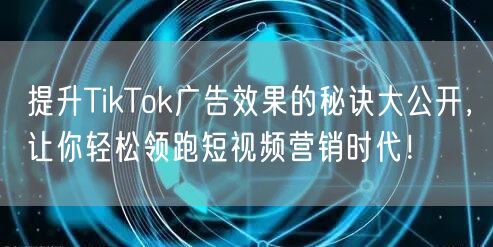 提升TikTok广告效果需要综合运用多种策略和技巧。从精准定位到创意内容制作、数据分析与优化调整等方面下功夫,不断提高广告效果。同时,关注TikTok的最新动态和市场变化,保持与时俱进。相信只要你掌握了这些秘诀和技巧,就能在短视频营销时代轻松领跑!