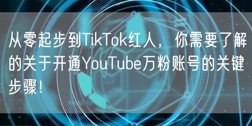 通过以上关键步骤,你可以从零起步开通一个成功的YouTube账号,逐步成为TikTok红人。关注行业动态,持续学习,不断改进,才能在竞争激烈的社交媒体环境中脱颖而出。