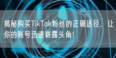 TikTok作为全球最受欢迎的社交媒体平台之一,吸引了众多内容创作者和营销人员的关注。在这个平台上,拥有大量粉丝意味着更高的曝光率和更多的商业机会。然而,许多新手在尝试增加粉丝数量时常常感到困惑。本文将为你揭秘购买TikTok粉丝的正确途径,帮助你快速增加粉丝,让你的账号在TikTok上崭露头角!