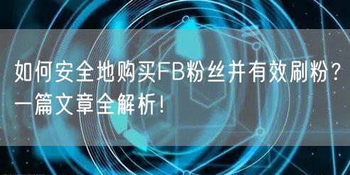 在Facebook上拥有大量粉丝是提升个人或品牌影响力的重要途径。然而,如何安全地购买FB粉丝并有效刷粉,成为许多用户关注的焦点。本文将为您全面解析这一话题,助您轻松提升Facebook影响力。