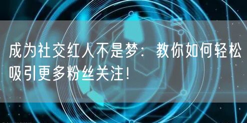 通过以上的步骤,相信你已经成为一个吸引众多粉丝关注的社交红人。但记住,持续的努力和不断的创新才是关键。快来实践吧,实现你的社交红人梦想!