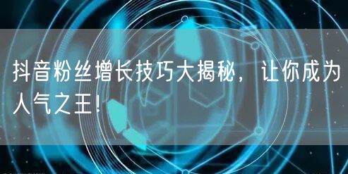 总之,想要在抖音上成为人气之王并非易事,需要不断尝试和学习新的技巧和方法。本文为你提供了一些有效的抖音粉丝增长技巧,希望能对你有所帮助。祝你早日成为抖音人气之王!