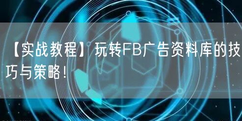 【FB广告入门】玩转广告资料库的技巧与策略,轻松开启广告之旅!本文将为您详细介绍如何有效利用Facebook广告资料库,帮助您提升广告效果,实现营销目标。