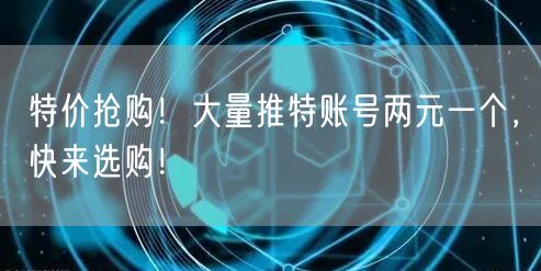 【限时抢购】特大好消息!现在推特账号大放送,只要两元一个,快来选购吧!我们提供大量的优质推特账号,让你轻松拥有社交网络的一席之地。无论是为了拓展业务还是交友互动,一个活跃的推特账号都能为你带来无限可能。